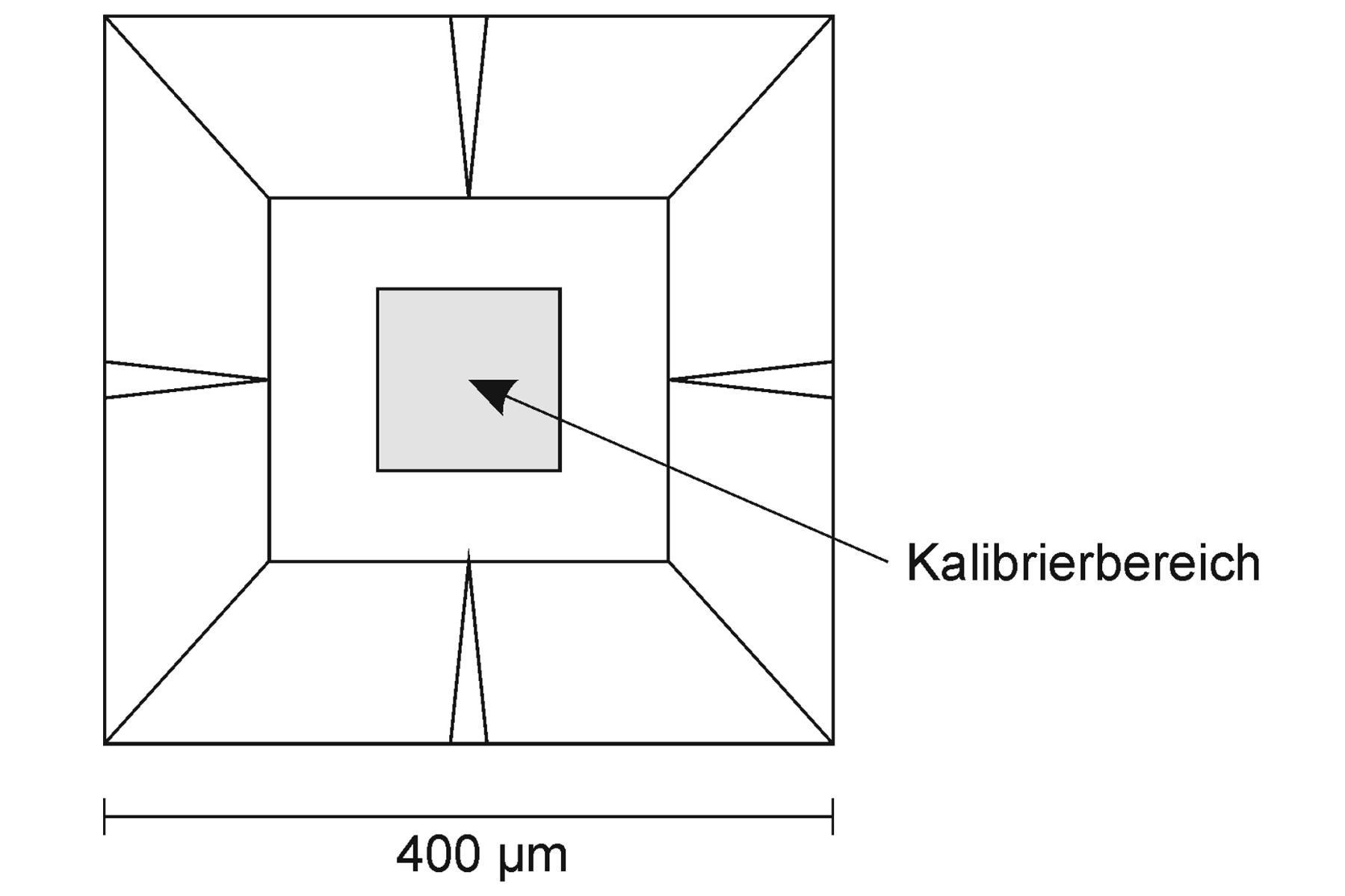 m2c 3D AFM Kalibrierstrukturen gibt es für verschiedene Scanbereiche (20 μm x 20 μm bis 80 μm x 80 μm). Für die Kalibrierung kann entweder der gesamte Bereich oder ein Teil (Einzelpyramide) verwendet werden.