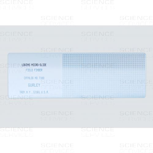 Lovins Micros-Slide Field Finder helps you to index points of interest on a microscope slide the same way you find them on a road map. A standard 75 x 25mm glass slide has a photo etched grid pattern of 1mm squares, subdivided into 0.1 mm intervals. Each square is marked with a letter and a number. You center the detail in the field of the microscope, replace the specimen slide with the field finder, and read the coordinates. Note reading on slide, and you can find that detail immediately by reversing procedure.