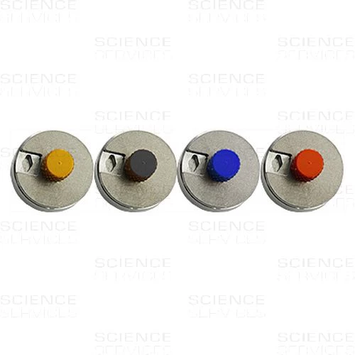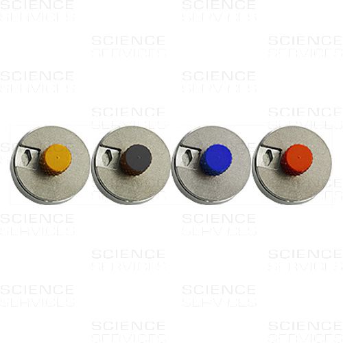 Runde Aluminium-Aufbewahrung (14x11mm) für die Lagerung, den Cryotransfer und Transport von FIB Lift-Out- oder Halb-Grids. Rautenförmige Vertiefungen (ca. 1,8mm tief) für je vier Grids. Die nicht-statische Aluminium-Abdeckung wird mit einer farbigen Schraube gehalten, welche in der Mitte der Box eingeschraubt wird und die Identifizierung der Proben erleichtert.