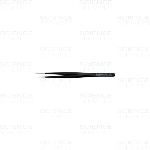 Dumont ESD Pinzette mit stabilen Spitzen und epoxidbeschichteten Griffen. Spitzenmaße: A: 0,2mm B: 0,4mm. Länge: 125mm