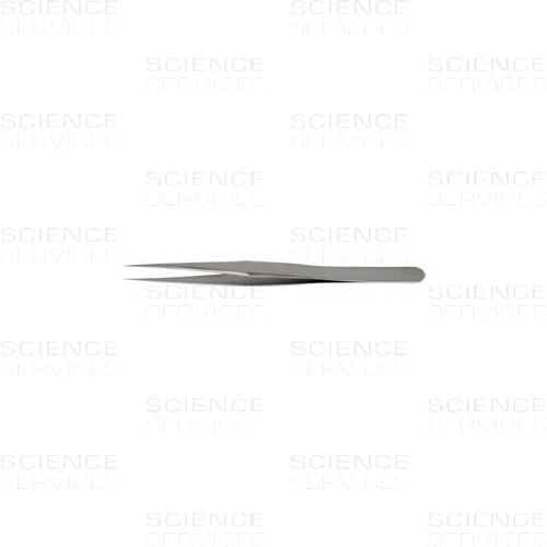 Dumont Pinzette mit superfeinen, dünnen Spitzen. Spitzenmaße: A: 0,04mm B: 0,08mm. Länge: 120mm