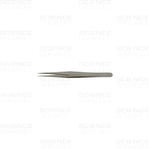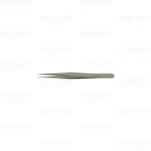 Dumont Pinzette mit superfeinen Spitzen. Spitzenmaße: A: 0,04mm B: 0,08mm. Länge: 110mm