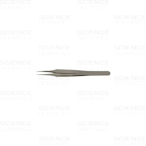 Dumont Pinzette mit feinen, stabilen Spitzen. Spitzenmaße: A: 0,08mm B: 0,13mm. Länge: 110mm.