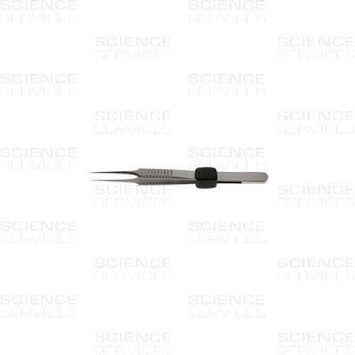 Dumont Pinzette mit Klemmring. Sehr feine Spitzen. Sehr hochwertig verarbeitet. Spitzenmaße: A: 0,01mm B: 0,05mm. Länge: 110mm.