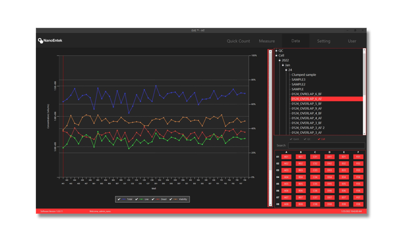 Der EVE-HT liefert Gesamt-, Lebend- und Lebensfähigkeitsdaten der analysierten Zelllinien