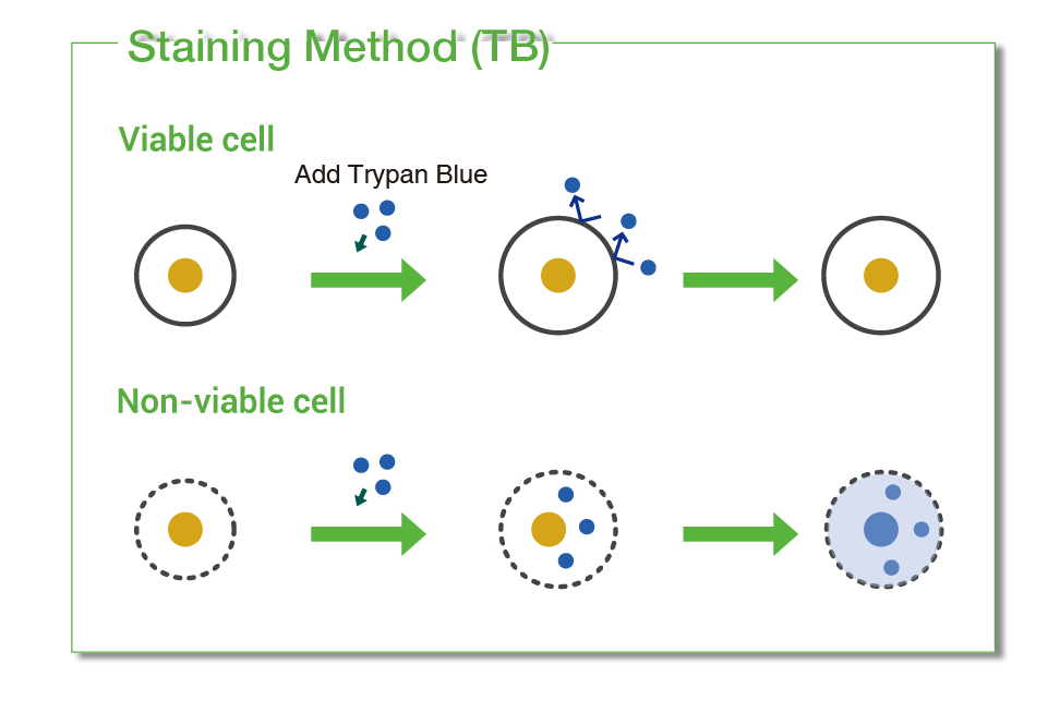 Trypanblau ist ein Azofarbstoff, der nur tote Zellen anfärbt. Durch die Verwendung der Trypanblau-Färbemethode kann der EVE-HT mögliche Kreuzkontaminationen verhindern.