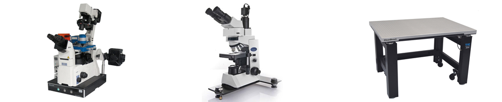 Schwingungsisolierte Tische entkoppeln Geräte von Vibrationen, welche im Raum, im Gebäude und/oder in dessen Umgebung entstehen. Es handelt sich zumeist um passive Systeme auf denen z.B. komplette Laser-Scanning-Mikroskope oder Ultramikrotome platziert werden können. Auch aktiv isolierte Tische sind erhältlich.