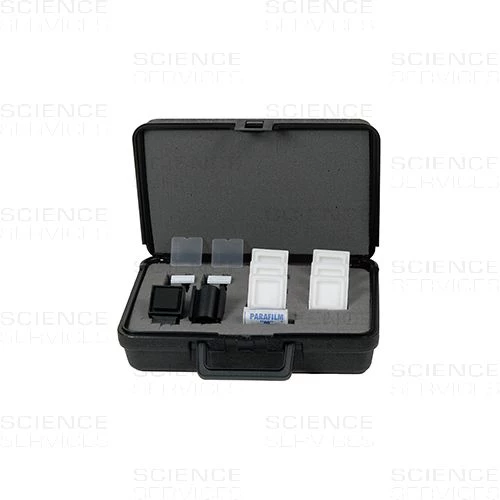 Das Färbe-Kit wurde zum Nachkontrastieren von biologischen Proben auf TEM-Grids, z.B. mittels Schwermetallfärbung entwickelt. Es können bis zu 20 Netzchen gleichzeitig kontrastiert werden. Diese modifizierte Version des nicht mehr verfügbaren Original-Hiraoka-Färbekits erleichtert das Grid-Handling, spart Zeit und Reagenzien. Bestehend aus: 6x Kontrastierwanne, Plattenhalter, Parafilm-Druckform, 2x Kontrastierwannen-Einsatz, 2x Gridhalteplatte, Parafilm.