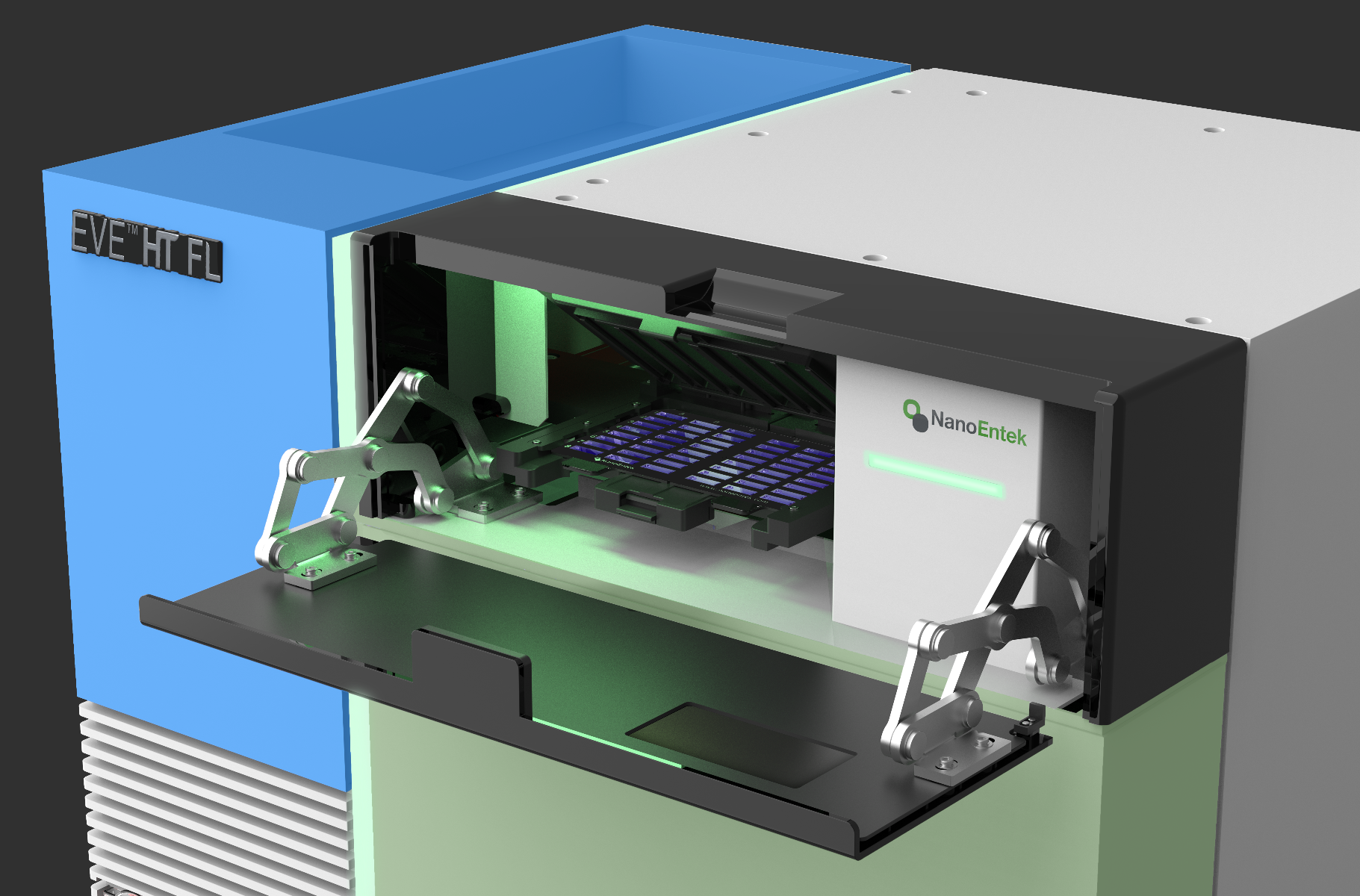 Der automatische Hochdurchsatz Fluoreszenz-Zellzähler EVE™ HT FL ist mit einem Hellfeld und zwei Fluoreszenzkanälen, UV für DAPI und blau für Acridin Orange (AO) Detektion ausgestattet. In nur 3 Minuten können bis zu 48 Proben gezählt und ausgewertet werden. Der EVE™ HT FL bietet höchste Präzision und Genauigkeit sowohl für Zelllinien als auch für die Analyse von Primärzellen in einer Vielzahl von Anwendungen.