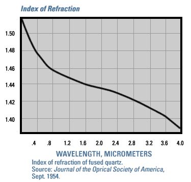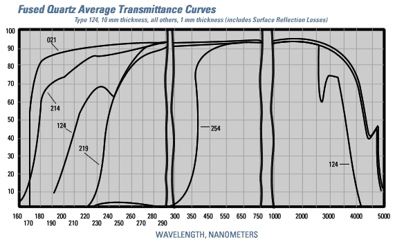 Optical transmission properties provide a means for distinguishing among various types of vitreous silica as the degree of transparency reflects material purity and the method of manufacture.