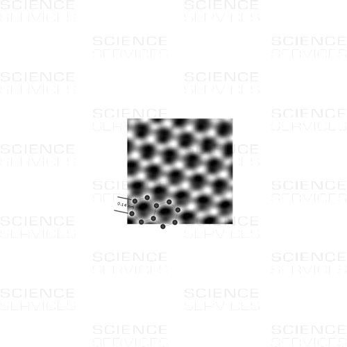 We offer ultrahigh-quality graphene that is produced through the substrate-free gas-phase method[1]. The graphene created by this technique possesses a highly ordered structure that is composed of 99% carbon by mass (1% hydrogen)[2]. This graphene was used to directly image gold nanoparticles and their organic surface molecules in both conventional and atomic-resolution TEMs at a level that greatly surpasses any current TEM support film[3].