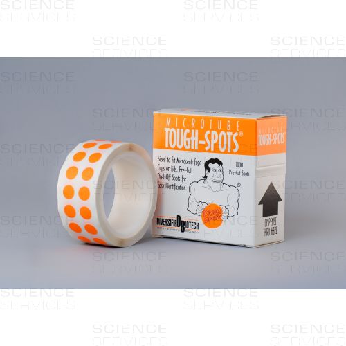 Runde abziehbare Beschriftungsetiketten für den Deckel der Mikrozentrifugationsröhrchen. Beschriftungsetiketten sind mit den meisten Laborschreibstiften, lösungsmittelbeständigen Stiften und Teeny Writers zu beschriften.