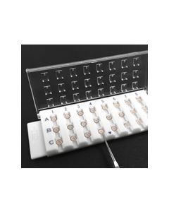 TEM Gridbox für 24 TEM Grids. Durch das alphabetische Koordinatensystem sind die Grids immer wieder zuordnbar. Der Deckel erlaubt den zeitgleichen Zugriff auf nur 2 rautenförmige Vertiefungen, was das versehendliche Herausfallen oder eine Kontaminierung vorbeugt. Die Box eignet sich gut für den täglichen Umgang und aber auch für die Langzeit-Aufbewahrung. Mit 3 zusätzlichen Vertiefungen als Aufbewahrungsmöglichkeit für Harzblöcke. Die Box gibt es mit und ohne Nummerierung.