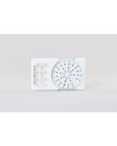 Für 100 TEM Grids. Mit eindeutiger Nummer an zwei Stellen, um ein falsches ablegen zu verhindern. Einfache Entnahme. Nummerierte rautenförmige Vertiefungen, für den täglichen Umgang oder Langzeit-Aufbewahrung. Inklusive Index-Kärtchen.
