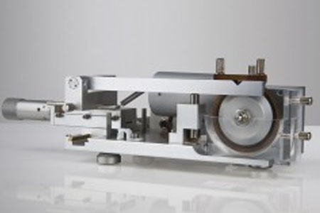 Die MicroSaw ist eine kleine, vielseitige Diamantradsäge, die für prezise Arbeiten auch unter ein Standard-Stereomikroskop gestellt werden kann. Diese Schneidvorrichtung ist für das Vortrimmen von TEM- und kleineren REM-Proben konzipiert und zum Schneiden fast aller Festkörpermaterialien mit einer Genauigkeit von 0,01 mm geeignet.