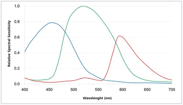 Spectral Sensitivity of Axiocam 212 color (incl. IR Filter)